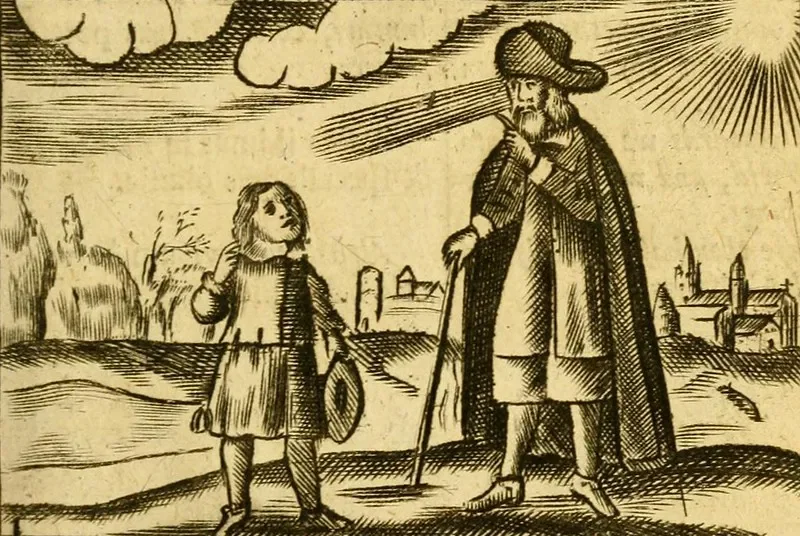 opening illustration of Master and Child, from the 1705 English edition of Orbis Sensualium Pictus. Source