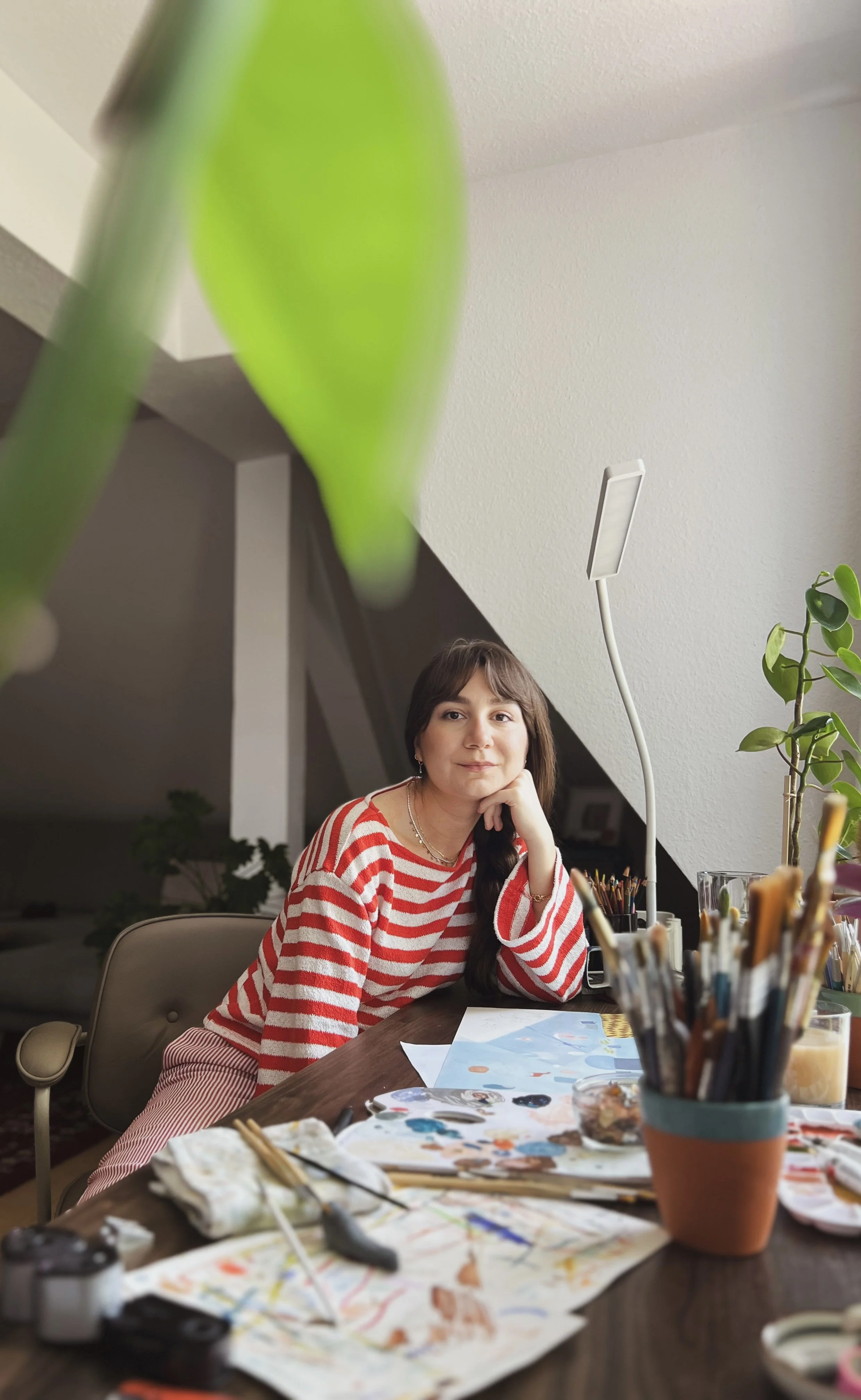 Haya Halaw is an award wining Syrian illustrator/ painter based in Hamburg Germany. Illustrated more than 18 children’s books . Her work also includes comics, Editorials, and paintings. She had her first solo exhibition in 2022 titled” of Home in Land” in Amman, Jordan.